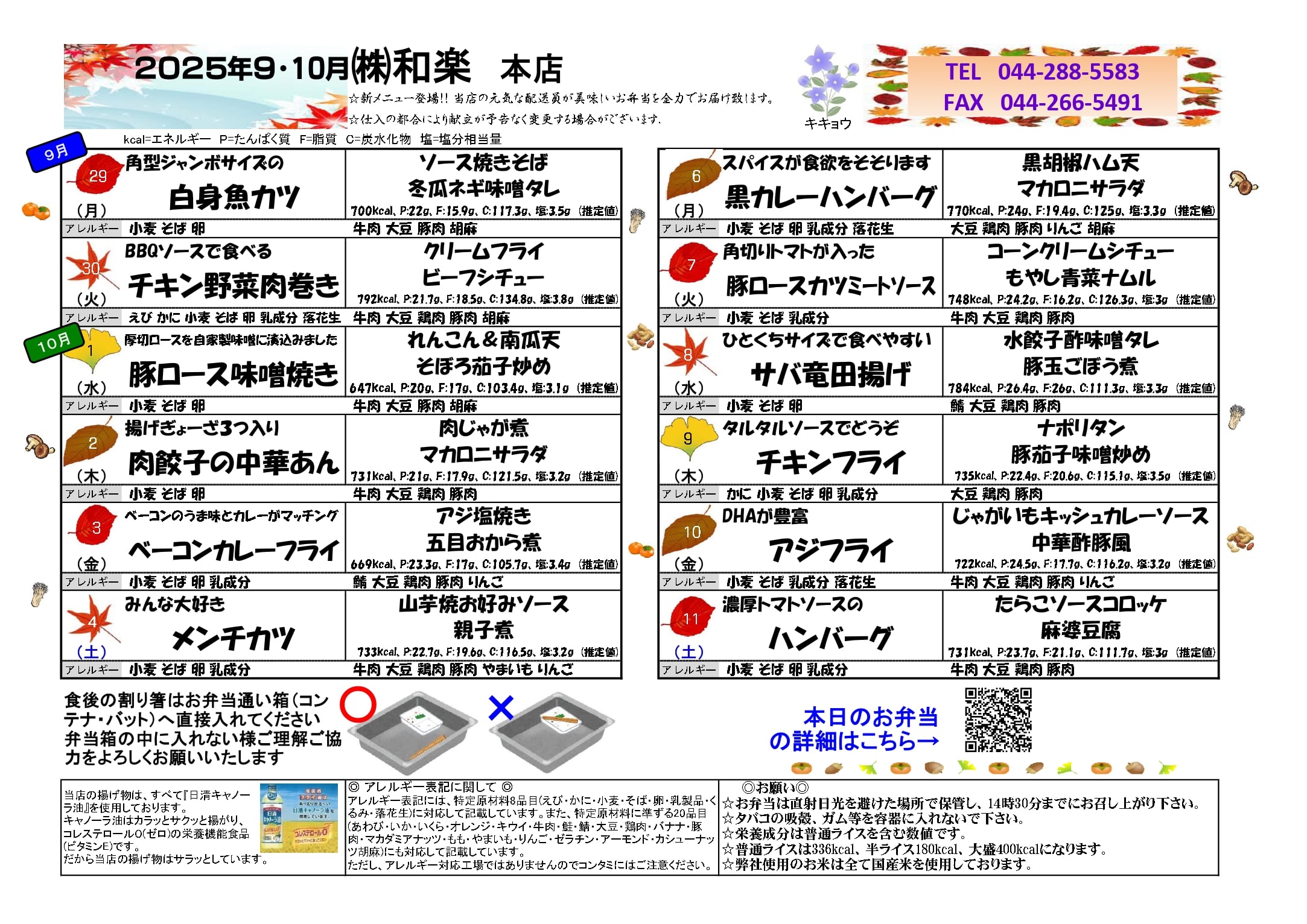 3. 和楽の健康味彩メニュー2025年9月29日〜2025年10月11日