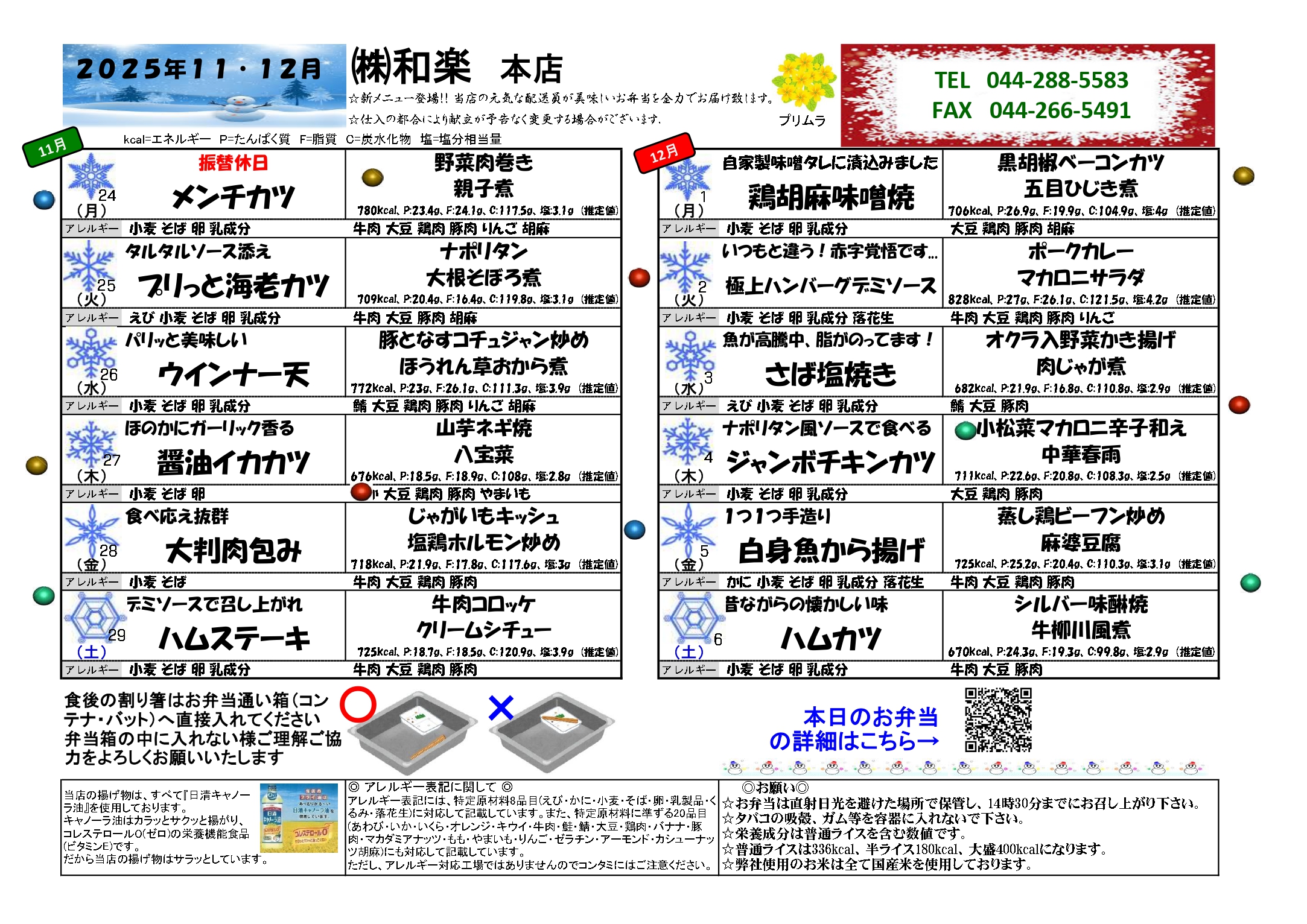 和楽の健康味彩メニュー2025年11月24日〜2025年12月6日