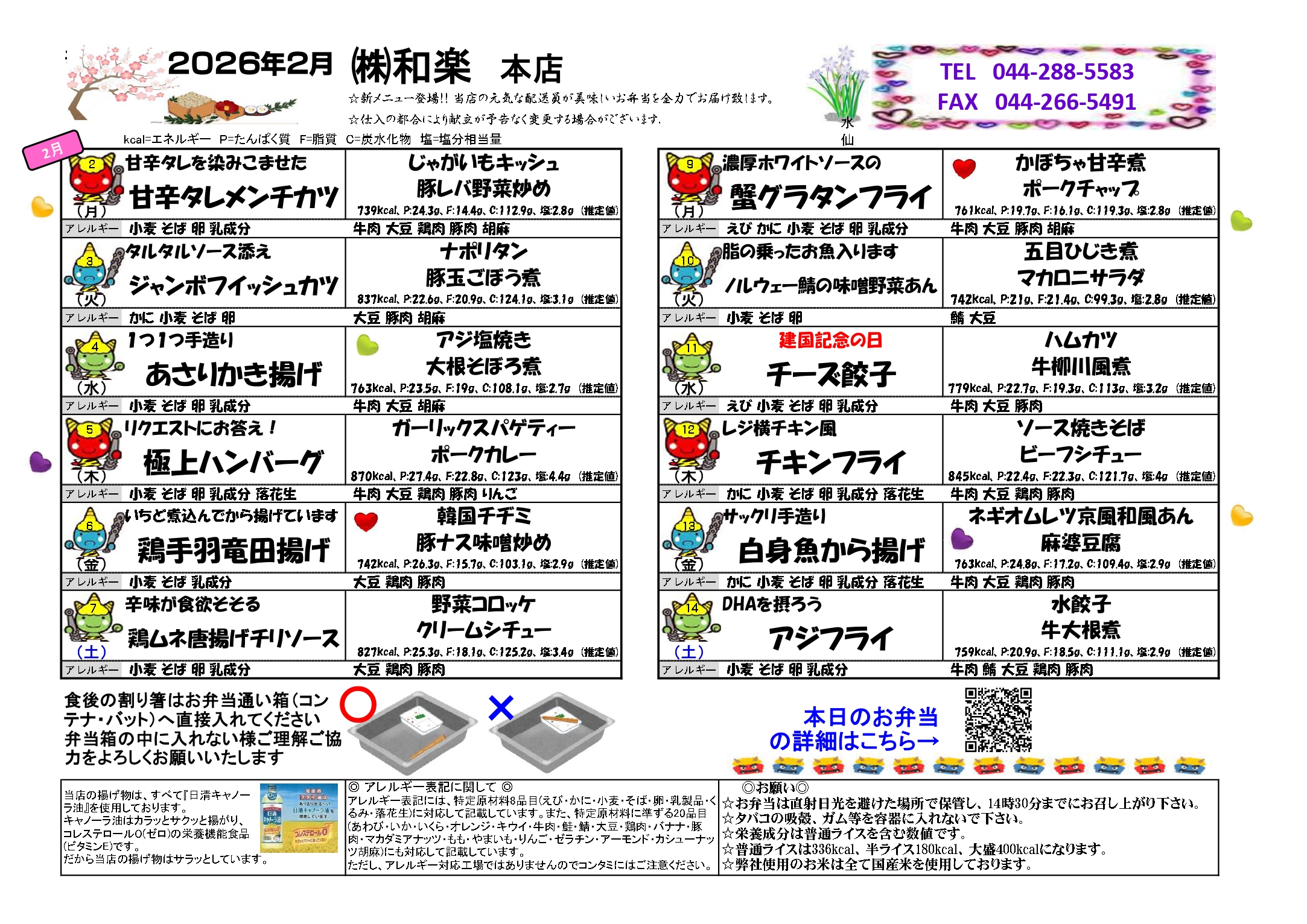 和楽の健康味彩メニュー2026年2月2日〜2026年2月14日