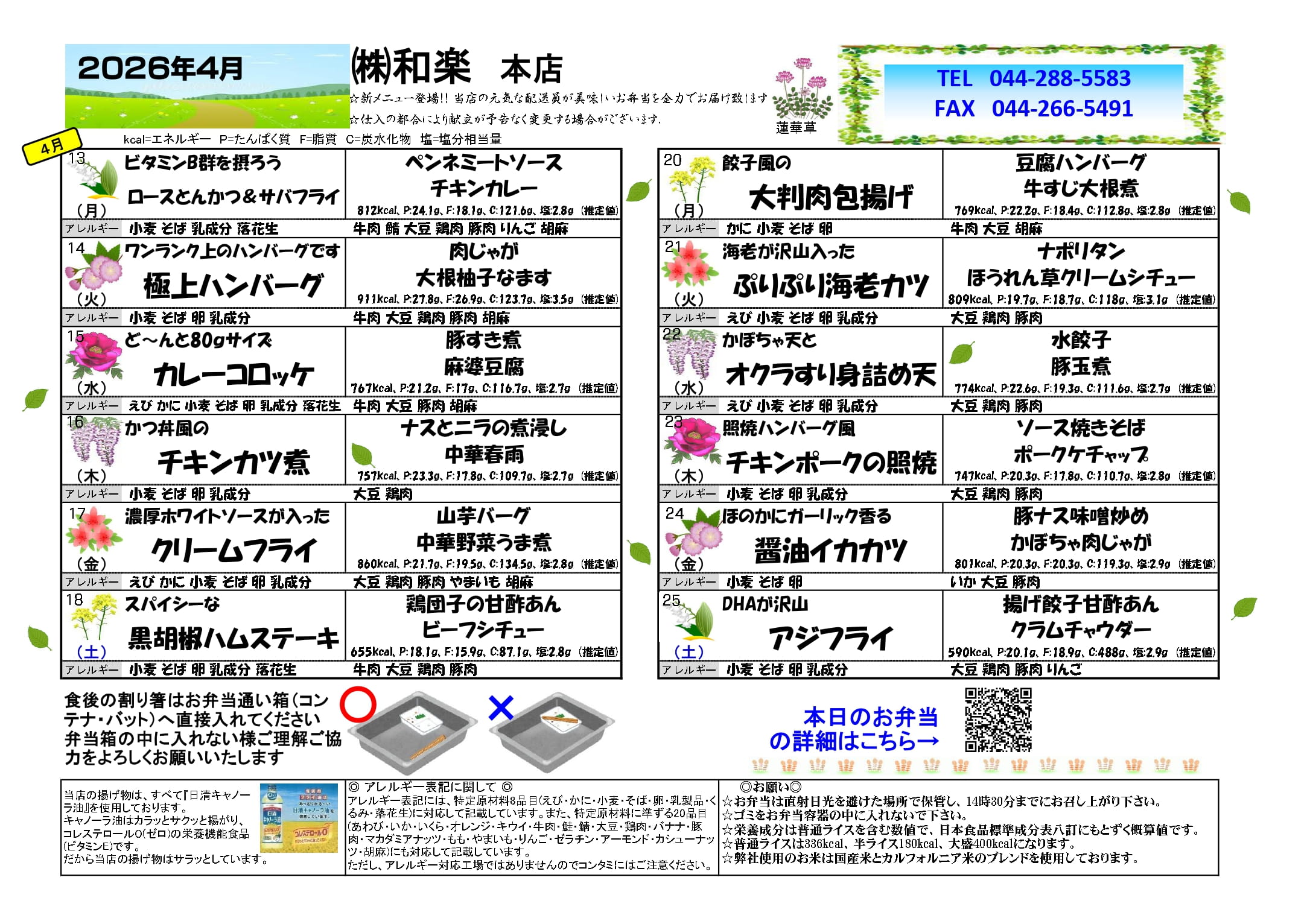 和楽の健康味彩メニュー2026年4月13日〜2026年4月25日
