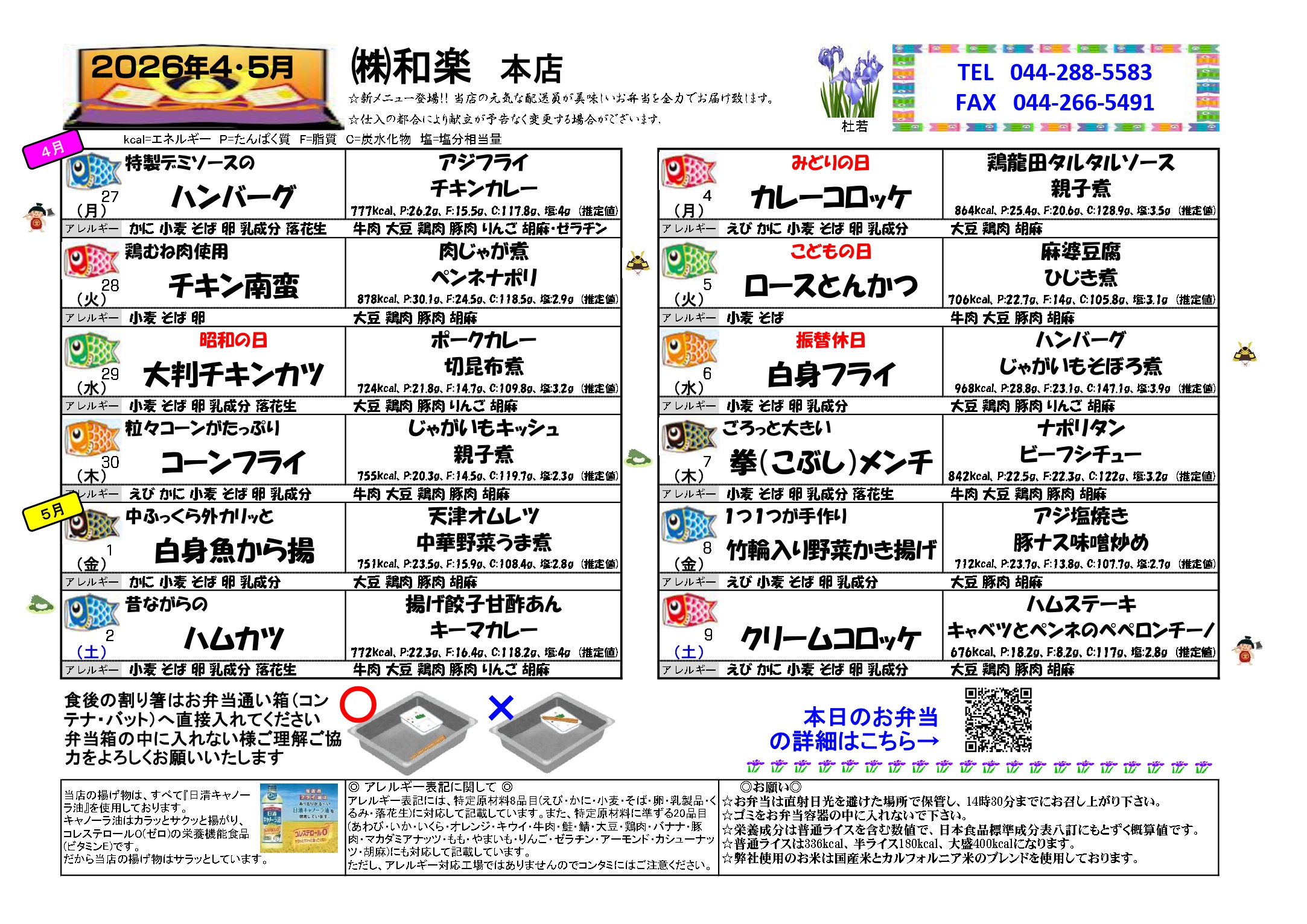 和楽の健康味彩メニュー2026年4月27日〜2026年5月9日