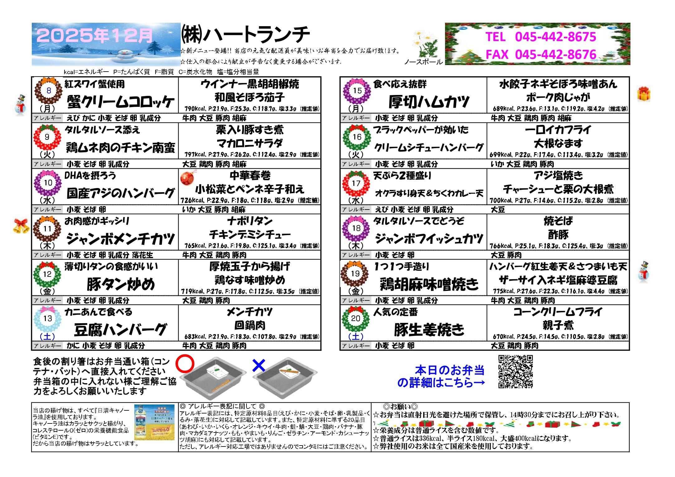 3. ハートランチの日替りメニュー2025年12月8日~2025年12月20日
