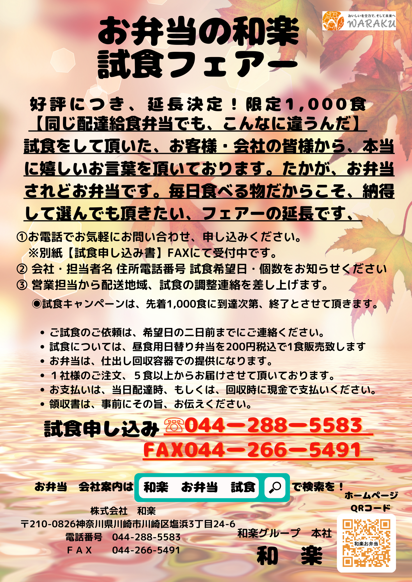 ※試食日の問合せは平日・月曜日~金曜日 9時から16時まで受け付けております。(土日祝日 時間外不可)